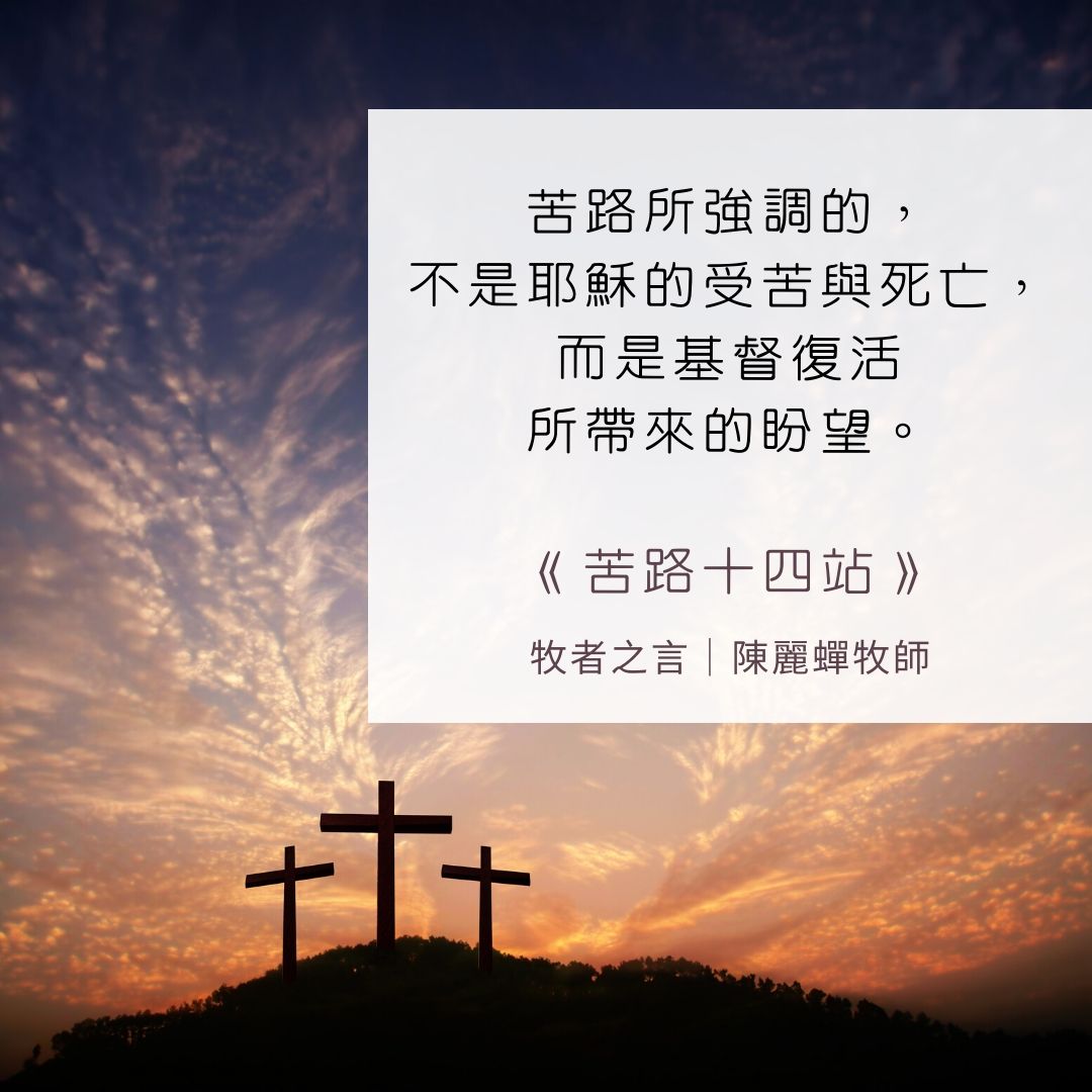 耶穌基督的受苦,成為世人得救的途徑,祂在耶路撒冷受難至死前所走過的路稱為「苦路」(Via Dolorosa),共有十四站。苦路所強調的,不是耶穌的受苦與死亡,而是基督復活所帶來的盼望。這星期,讓我們多默念基督的苦難與我們信仰生活的意義。