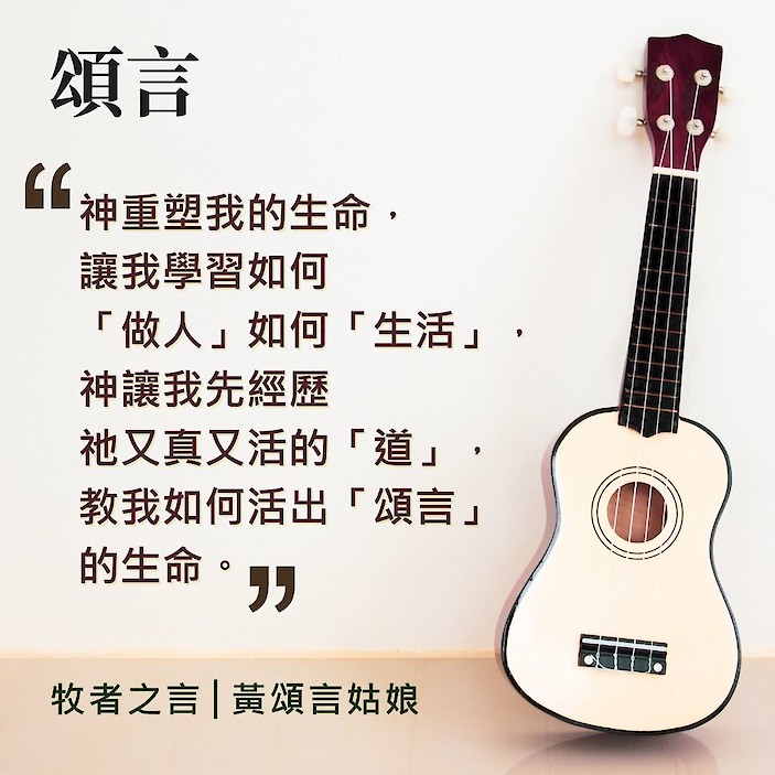 我是黃頌言,大家可以叫我Ode。Ode 的意思是「頌歌」,我從小喜歡唱歌讚美,也常從詩歌中學習及感受神,因此Ode這名字很表達到我的生命。而中文名「頌言」,是父母給我取的名字,小時候我就知道當中的意思——要歌頌主的聖言。小時候的我總覺得自己不配這名字,因為我還未明白聖經,不懂如何「頌言」。我從小到大讀書的資質都很有限,媽媽常常鼓勵我將勤補拙,所以我一直都很努力讀書,雖然成績只是僅僅可以,然而成長路上,我立志要好好的讀經及明白神的話。中學畢業後,我以剛剛好的成績進了「香港至尊設計學院」,再到理大學習產品設計,然後進到社會做了幾年「玩具設計師」,後來我發現在工作中生命很枯乾及迷失。及至知道是時候需要回應神的呼召,就是全時間事奉、全心全意「讀神的話」,預備自己被神用 。除了自身對神話語的渴慕,也看見教會的需要,看見比我小的弟兄姊妹一個一個的離開教會,為此感到痛心。因此希望回應神的愛,學習牧養主的小羊,讓弟兄姊妹可以從小在神話語下扎根。於是我在「香港神學院」就讀道學碩士課程,剛剛2020 年7月畢業。我讀神學的三年間,感受學院的課程以外,神為我們每一個同學度身訂造不同的「課程」。不但讓我眼界大開,打破了固有的我,神重塑我的生命,讓我學習如何「做人」如何「生活」,神讓我先經歷祂又真又活的「道」,教我如何活出「頌言」的生命。