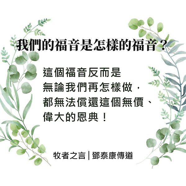 其實我們的福音是一個『重價的福音』,是作為上帝兒子,有尊貴身份的主耶穌基督,為了不值得被愛的罪人,在十架上受盡痛苦,為世人犧牲了寶貴的生命去拯救我們。所以並不單是”白白”甚麼都不用付出、只要舉手決志“那麼簡單。這個福音反而是“無論我們再怎樣做,都無法償還這個無價、偉大的恩典”!唯有當我們對福音有這個確認,我們才會甘心、謙卑地去按著上帝的吩咐去遵行祂的道,不敢隨意犯罪,會知道自己為上帝所做的一切都不算甚麼、微不足道。