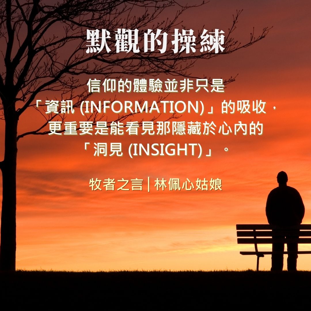 然而,信仰的體驗並非只是「資訊 (Information)」的吸收,更重要是能看見那隱藏於心內的「洞見 (Insight)」。這不是單純知識的累積,這是一種較難以理性言說的體驗,是認知和經驗的整合,是信徒自身與神關係體驗的融合,讓人看清自己的本相,認識真實的自我。