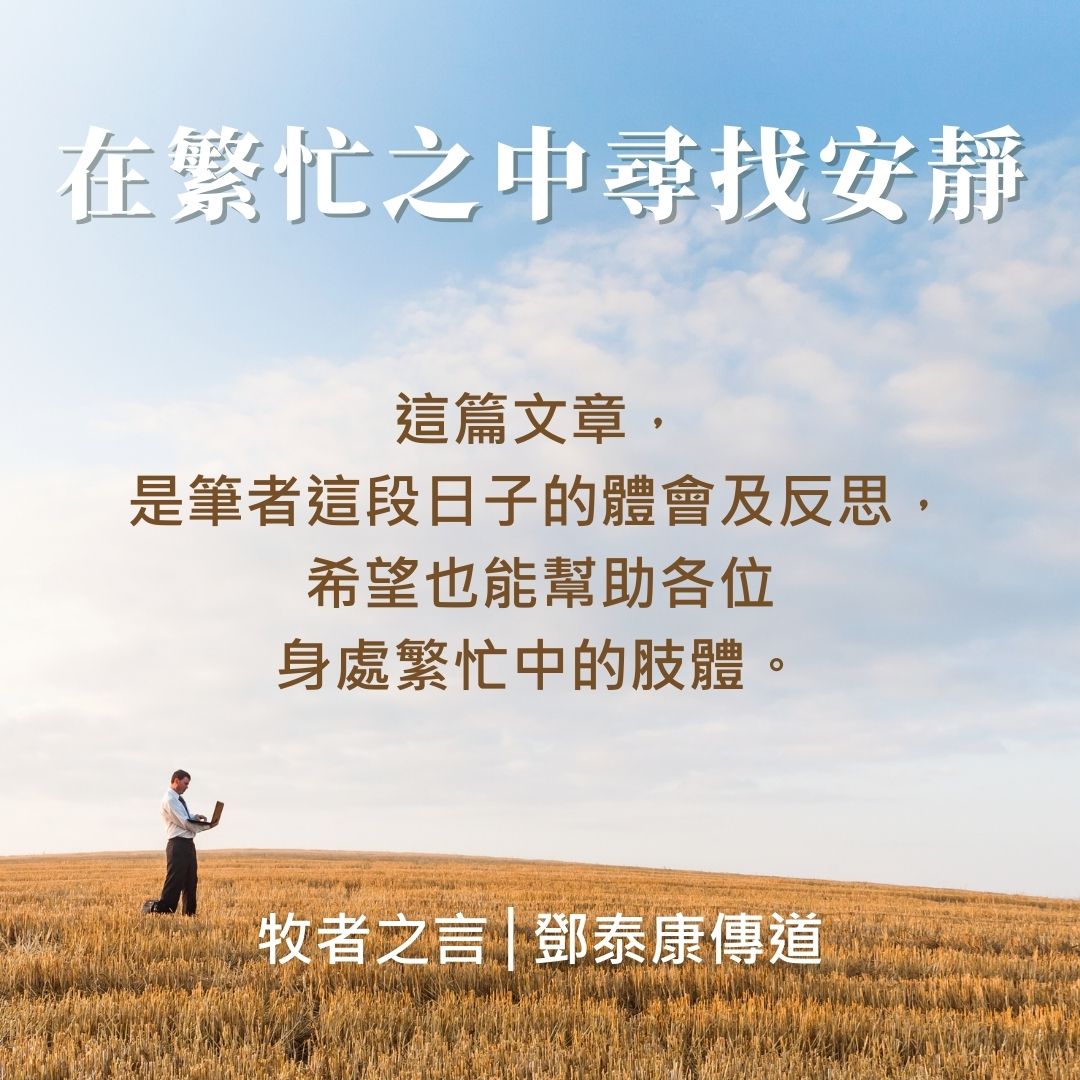 這篇文章,是筆者這段日子的體會及反思,希望也能幫助各位身處繁忙中的肢體。