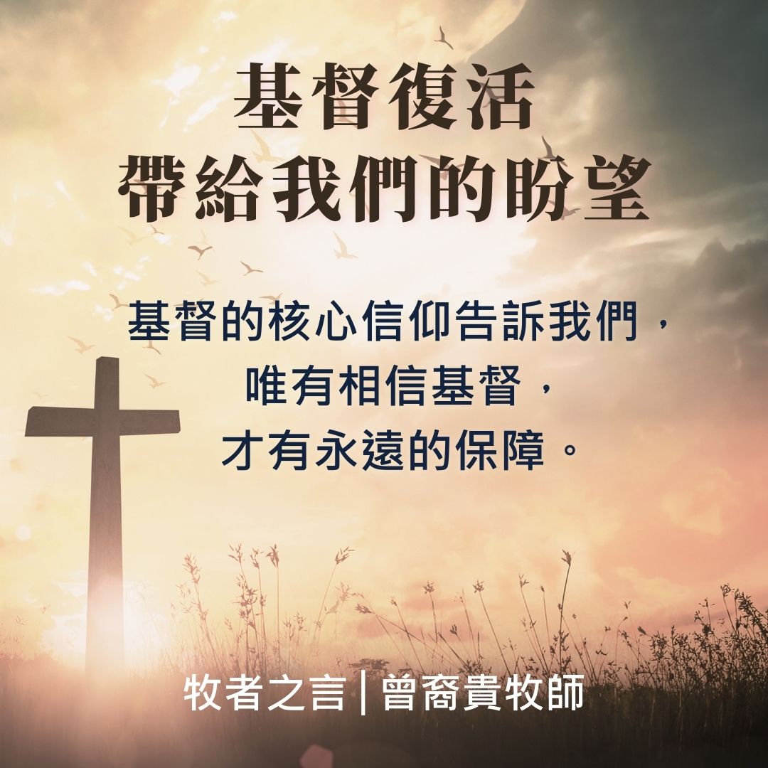 正因如此,我們需要永遠的保障,而不僅僅是短暫的。短暫的保障如果能夠全面,有時會阻礙我們追求真正永存的保障。基督的核心信仰告訴我們,唯有相信基督,才有永遠的保障。也就是說,地上的保障是短暫的,是有限的,甚至有時會妨礙我們追求永恆的保障。