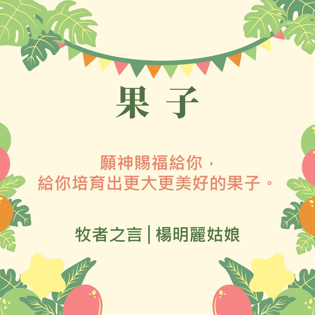 在這幾節大家都很熟悉的經文中,很希望你能找到自己常常擁有,或間中擁有的果子。為你感恩,這是你擁有的聖靈果子,願神賜福給你,給你培育出更大更美好的果子。