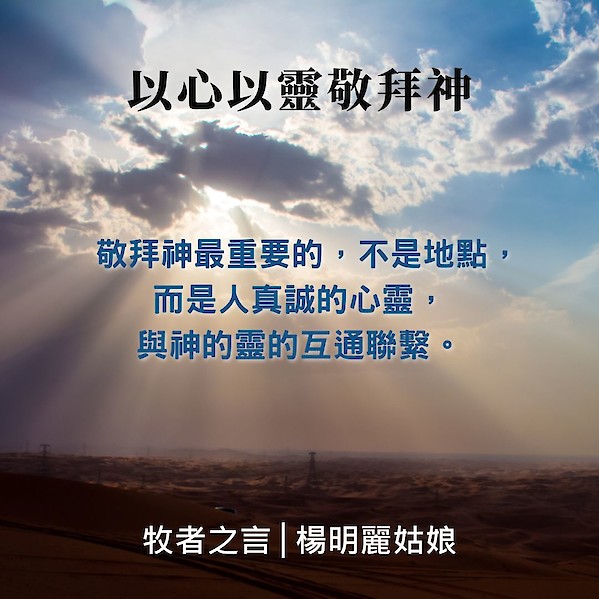 敬拜神最重要的,不是地點,而是人真誠的心靈,與神的靈的互通聯繫。
