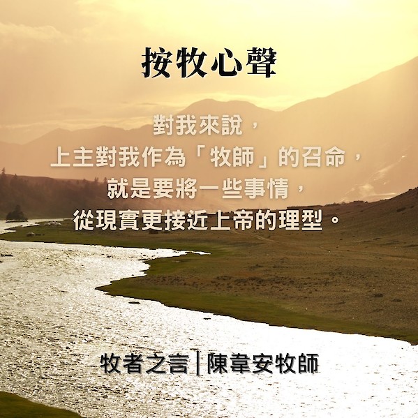 因此,當我收到這條銀白色的牧師帶的時候,我發現,這條牧師帶正好表達出我的事奉心聲。對我來説,上主對我作為「牧師」的召命,就是要將一些事情,從現實更接近上帝的理型。簡單來説,有三件事,我立志要使它更接近上帝的理想: