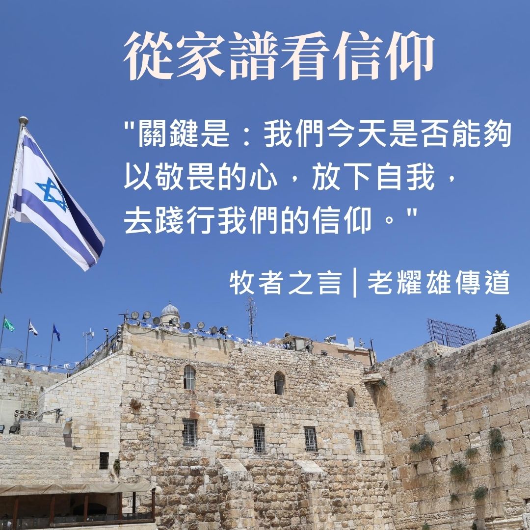 從這家譜,我們看見神與以色列關係的過程,神興起亞伯拉罕一人、興起希伯來一個民族、興起以色列一個國家,神的愛與祝福處處顯現。但人對神話語的輕視、對神的不敬虔、對罪的軟弱、放縱慾念的劣根性,全部都表露無遺。在王國分裂至被擄時期,以色列有不少回轉改過的機會,神亦呼召了很多的先知提醒眾君王及百姓,可惜以色列就如法老一樣,硬著心,不回轉,最後終至國破家亡。是以色列咎由自取 ? 抑或是神公義的彰顯 ? 在被擄時期,神仍然沒有放棄以色列,嚴格而然,神今天亦沒有放棄以色列,亦沒有放棄人類,神以恩典之約,取代了律法之約,神「道成肉身」,親自來到人間,在十字架上促成了這個恩典之約。